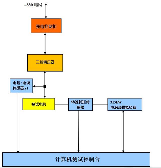 轉速扭矩傳感器(或轉速傳感器、負荷傳感器)、電流傳感器、電壓傳感器、溫度傳感器、振動噪聲傳感器、可控模擬負載器(電力測功機、電渦流模擬負載、水渦流模擬負載等),鑄鐵安裝平臺、工裝夾具、聯軸器、電控柜、計算機數據采集實時控制系統、智能電參數測量儀(或功率分析儀)、電機測試軟件、MAP效率云圖。